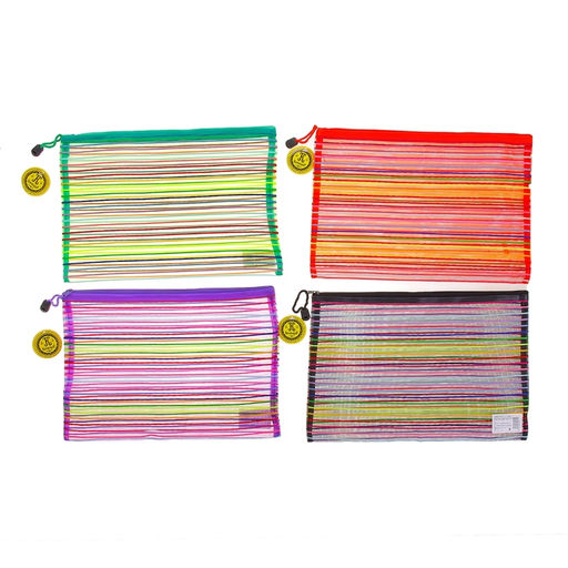 Цена за 12 шт. Папка-конверт «Полоска - сеточка» А4, на молнии, 23×34 см, МИКС