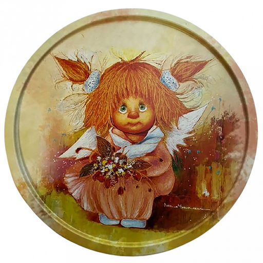 • Поднос металлический "Ангел душевного тепла" д20см, круглый, (тарелка) (Россия)