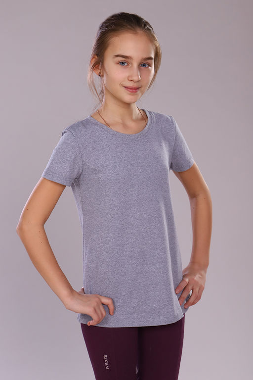 Комфортная детская футболка прямого кроя из 100% хлопка. Модель для повседневной носки из натуральной дышащей ткани. Идеально подходит для использования в дошкольных и школьных учреждениях на уроках физкультуры, танцев и хореографии.