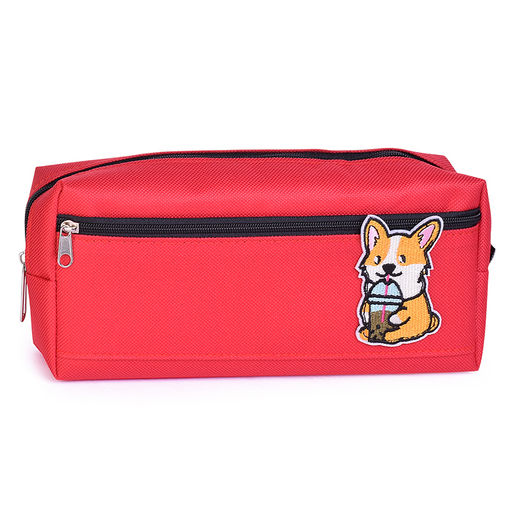 Пенал "Corgi" 20x8,5x4,5 см, прямоугольный для 50 предметов, плотный износостойкий полиэстер с водоотталкивающей пропиткой, на молнии, наружный объемный карман на молнии, вышивка, красный