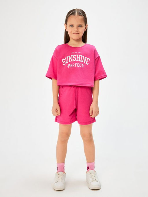 • 20214200016, Комплект детский для девочек ((1)футболка и (2)шорты) Purim1 фуксия