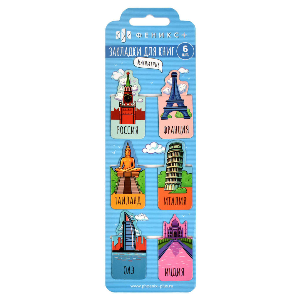 Набор закладок магнитных для книг арт. 65117 / 100 СТРАНЫ МИРА (6 шт. в наборе, размер 27x52 мм, материал: мелованная бумага, ферроагломерированный полимер; цвет: голубой, желтый, зелёный, красный, оранжевый, розовый, серый, синий, декор: полноцветный дизайн, особенности: глянцевая ламинация, индивидуальная упаковка: подложка с европодвесом из мелованного картона + ПЭТ-пакет)