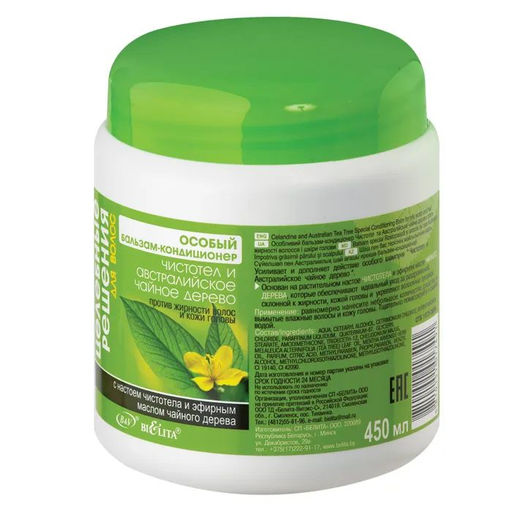 • Целебное решение Особый бальзам Чистотел и австрал.чайное дерево для жирных волос, 450мл