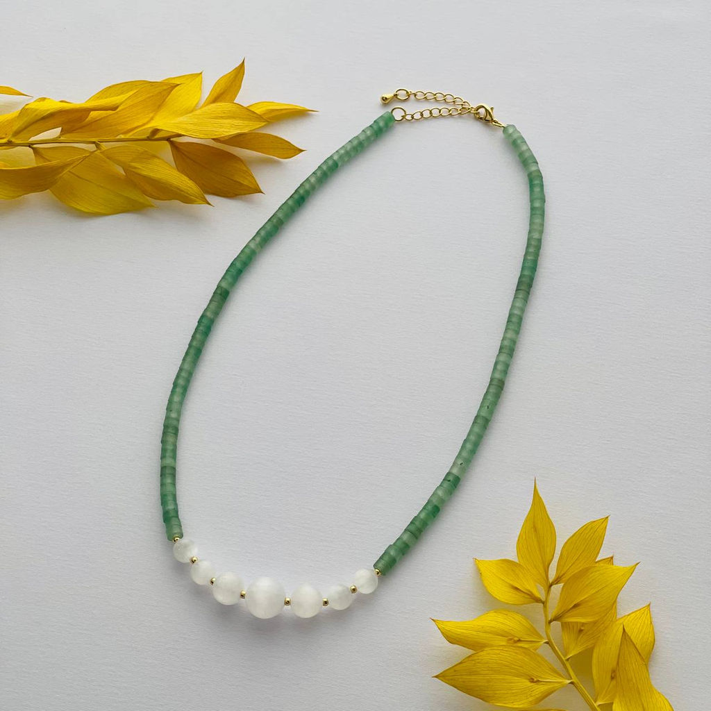 Бусы-Чокер из зеленого Кварца с Селенитом 42 см +