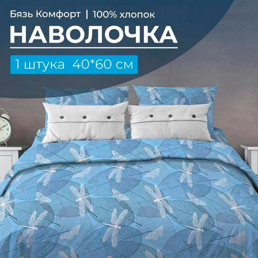 Артикул: Наволочка 40*60 см, бязь "Комфорт" (Стрекозы, голубой)
