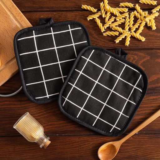 Кухонный набор (2 предмета) Доляна «Клетка», цвет черный, прихватка 17х17 см - 2 шт, 100% п/э