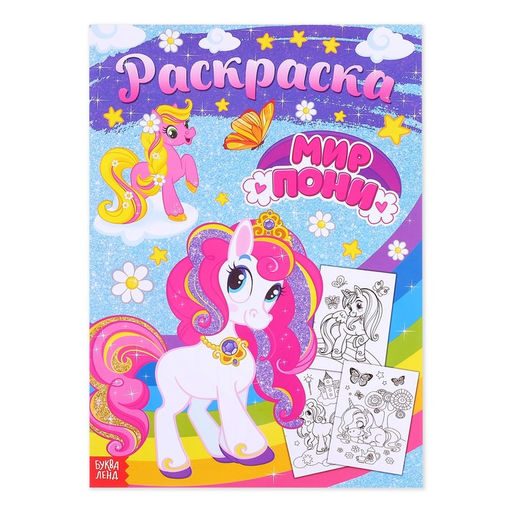 • Цена за 3 шт. Раскраска для девочек Мир пони, 16 стр., А4