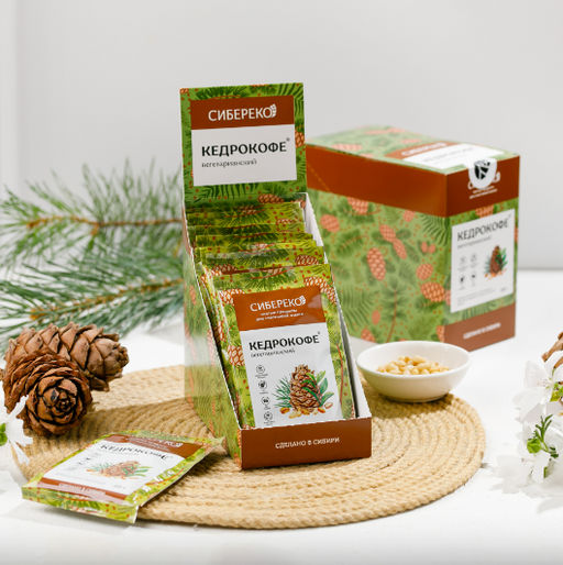Кедрокофе Вегетарианский - нежный Сибирский горячий напиток, созданный с заботой о природе! Таёжный кофе без кофеина - уникальный продукт от Сибереко. Сладость кедрового ореха и мягкий молочный вкус подарят Вам удовольствие и пробудят энергию для новых свершений!