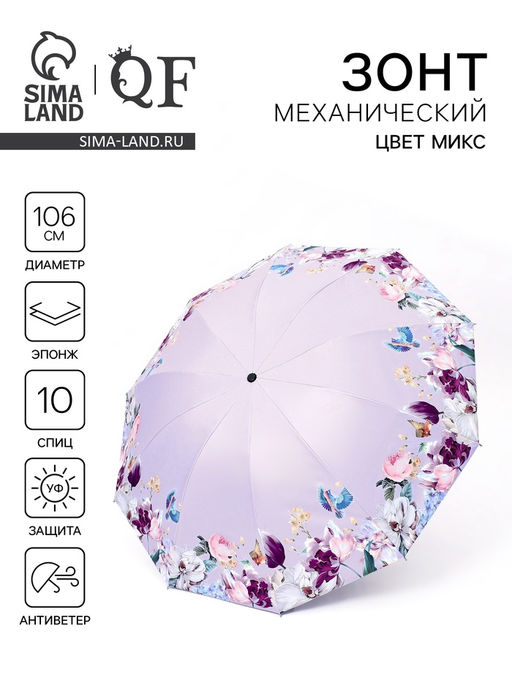 Зонты — незаменимый аксессуар в повседневной жизни, который защищает от непогоды и придаёт образу завершённость. В нашем ассортименте представлены модели, сочетающие практичность, стиль и надёжность. Выбирая зонт, важно учитывать не только дизайн, но и качество материалов, удобство конструкции и функциональность. От компактных складных вариантов, которые легко помещаются в сумку, до классических зонтов-тростей с прочным каркасом — каждый найдёт подходящий аксессуар для любых погодных условий и ситуаций.Купола зонтов изготавливаются из водоотталкивающих тканей, которые быстро сохнут и эффективно защищают от дождя. Современные материалы обеспечивают лёгкость и прочность, что особенно важно при ветреной погоде. Каркасы из алюминия или стекловолокна устойчивы к изгибам и повреждениям, а эргономичные ручки обеспечивают комфортное удержание даже при длительном использовании. Механизмы открытия варьируются от классических до автоматических, что позволяет быстро и удобно раскрывать или складывать зонт в любых условиях.Выбор зонта — это не только вопрос защиты, но и способ выразить индивидуальность. В нашем каталоге представлены разнообразные цвета и принты, от лаконичных однотонных моделей до ярких и оригинальных дизайнов. Зонт может стать стильным акцентом в вашем образе, подчёркивая вкус и настроение. Надёжный и красивый зонт — это гарантия уверенности и комфорта в любую погоду, позволяющая наслаждаться прогулками и деловыми встречами без лишних забот. Для кого: Для девочки. Для кого: Для женщины. Диаметр, см: 106. Длина, см: 28.5. Количество спиц: 10. Механизм зонта: Механика. Конструкция зонта: 4 сложения. Изображение: Цветы, растения. Проявляющийся рисунок: Нет. Особенности ручки зонта: Круглая. Бесплатная доставка: Да. Размеры товара: 4.5/4.5/28.5. Примечание: Выбор конкретных цветов и моделей не предоставляется. На фотографиях могут быть представлены не все варианты..