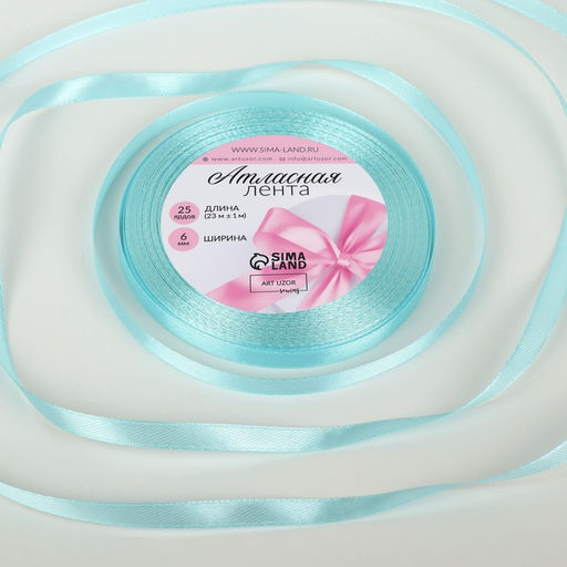 • Цена за 6 шт. Лента атласная, 6 мм, 23±1 м, голубая №211