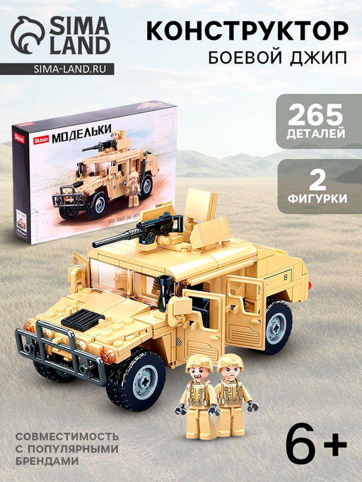 Конструируем и играемБлочные конструкторы предлагают множество идей для инженерного творчества, которое может стать весёлым занятием для всей семьи! Из разноцветных пластмассовых кирпичиков, маленьких фигурок можно собрать транспортные средства, здания и другие объекты.ОсобенностиЭлементы изготовлены из высококачественной пластмассы, надёжно соединяются между собой и разбираются без особого труда.Типовые детали конструктора совместимы с наборами Ausini, Brick, Sluban, Cogo, Peizhi, Jie Star и UNICON. Объединяйте, фантазируйте и создавайте новое!Неоспоримая пользаКонструируя, ребёнок разовьёт внимательность, воображение, логическое и образное мышление.Для детей старше 6 лет. Вид транспорта: Внедорожник/Джип. Возраст: От 6 лет. Среднее время сборки, мин: 150. Количество элементов: 265. Тематика праздника: 23 Февраля. Тематика конструктора: Военные. Тематика конструктора: Транспорт. Тип механизма: Без механизма. Уровень сложности: Средний. Бесплатная доставка: Да. Размеры товара: 5/23/35.
