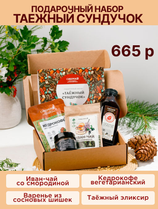 Подарочный набор «Таежный сундучок» - создан для того, что показать, что жест благодарности и признания может быть оригинальным и полезным. Наш подарочный набор это прекрасный способ одновременно выразить благодарность, пожелать крепкого Сибирского здоровья и угостить вкусными таежными дарами!