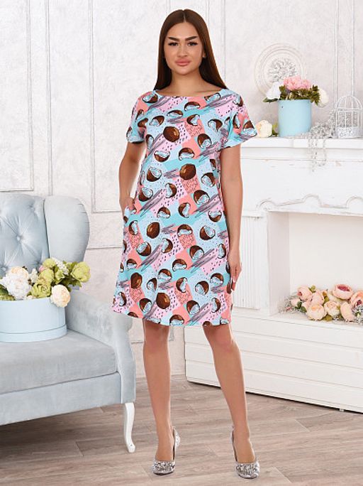 Туника женская со спущенным плечом. Вырез горловины в форме лодочки. В боковом шве карман.