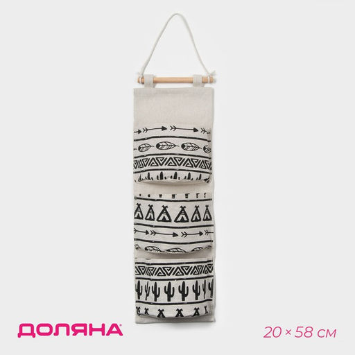 • Органайзер подвесной с карманами Доляна «Мексика», 3 отделения, 20×58 см, цвет белый