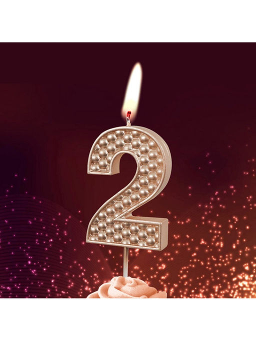 • Цена за 2 шт. Свеча в торт на шпажке «Жемчужная», цифра 2, шампань