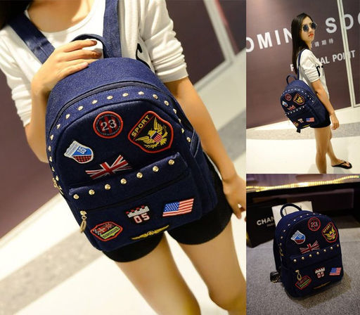 Рюкзак джинсовый с нашивками унисекс 35х25см