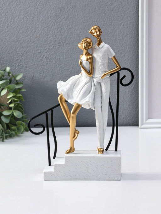 • Сувенир полистоун "Парочка стоит у перил" бело-золотой 5,5х20х26,5 см