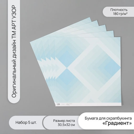 • Бумага для скрапбукинга «Градиент», плотность 180 г, набор 5 шт., 30.5×32 см