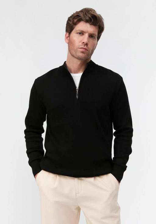 Артикул: Джемпер с воротником-стойкой на молнии черный
