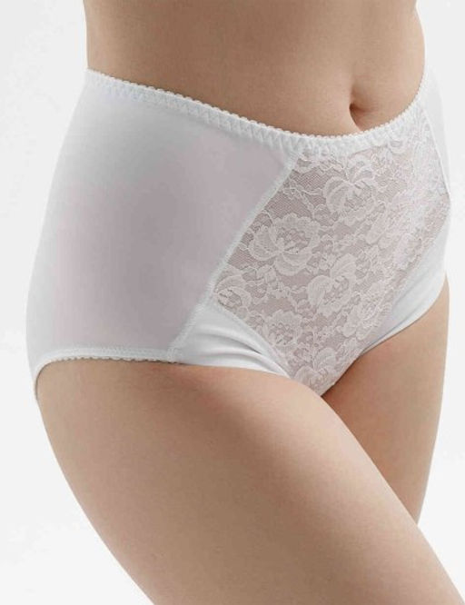 Женские трусы с высокой посадкой Misstyle 5009 классического белого цвета из эластичного полотна с микрофиброй, подарят не только максимальный комфорт, но и обеспечат легкий моделирующий эффект. Завышенная талия и широкие бока скроют возможные недостатки фигуры. Передняя деталь декорирована кружевной вставкой, которая ложится на весь животик.