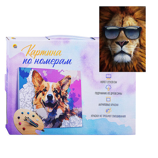 • Холст с красками 22х30 по номерам "Крутой лев в очках" (14цв.)