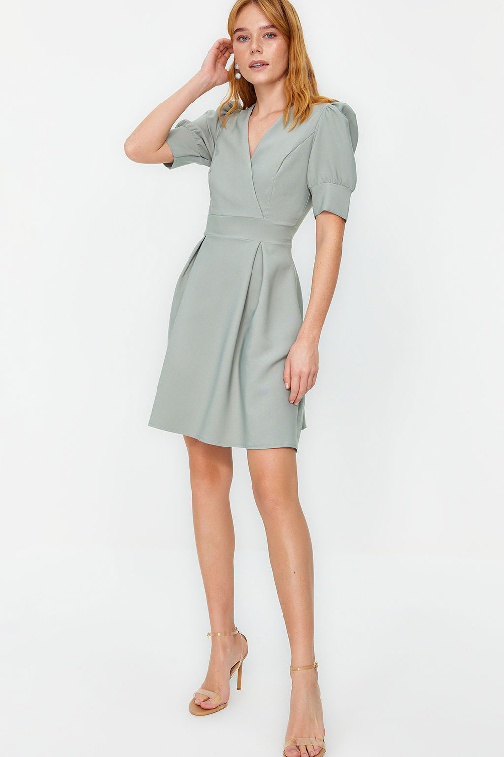 • Mint Kruvaze Yaka Skater/Belden Ac?lan Mini Dokuma Elbise TWOSS20EL1639
