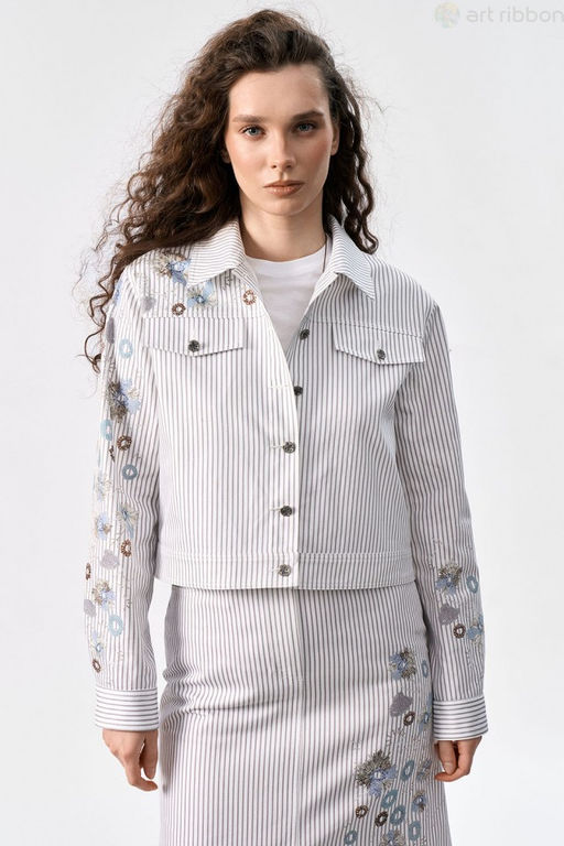 Куртка - ветровка прямого силуэта, изготовлена из плащевой ткани на вискозной подкладке.