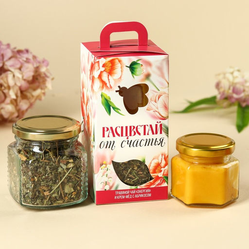 Подарочный набор Расцветай от счастья: чай травяной 25 г., крем-мёд с абрикосом 120 г.