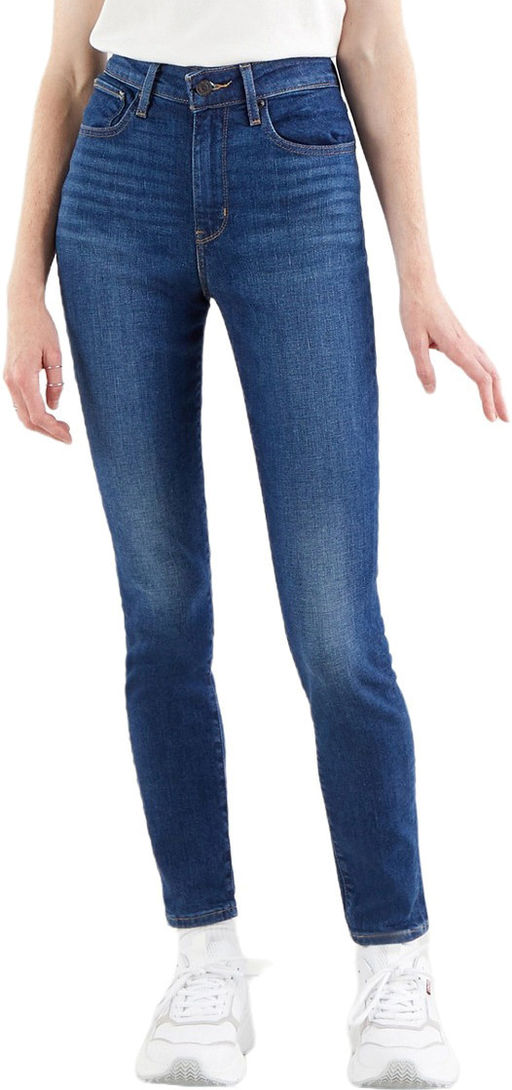 Женские джинсы Levis 721 синего цвета. Как модель 720 High-Rise Super Skinny, но чуть менее зауженные в ногах. Выполнены из эластичного денима для комфорта движения. Высокая посадка на талии. Легендарная кожаная нашивка на задней стороне пояса. Застежка на молнии. Карманы спереди и два кармана с фирменными дугообразными строчками Levis сзади.