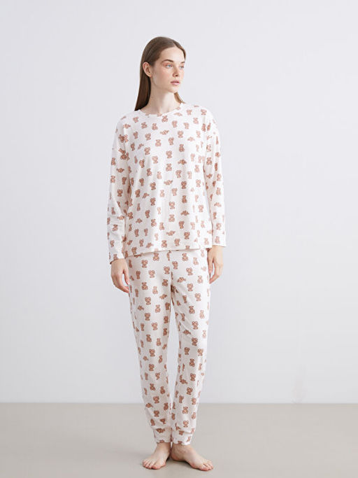 • Bisiklet Yaka Ay? Bask?l? Kad?n Pijama Tak?m?