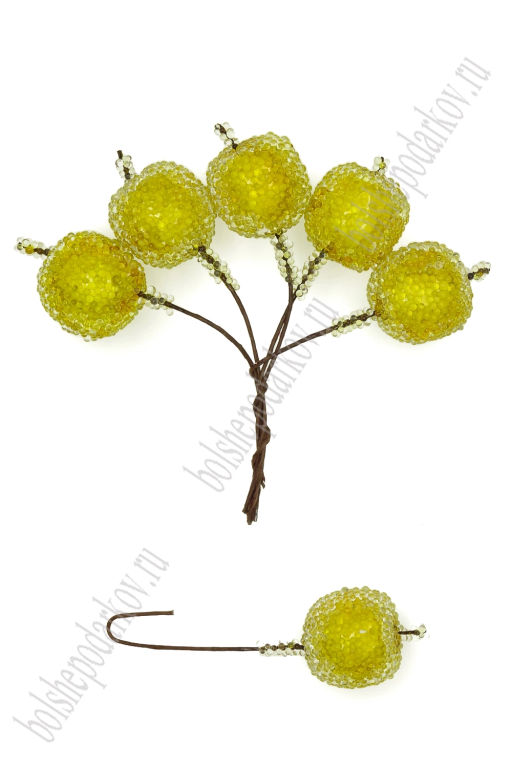• Муляж декоративный яблоко засахаренное на веточке, SF-1241, желтое (100 шт)