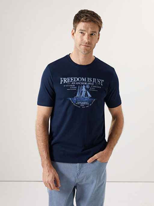 Bisiklet Yaka Bask?l? Penye Erkek Ti??rt