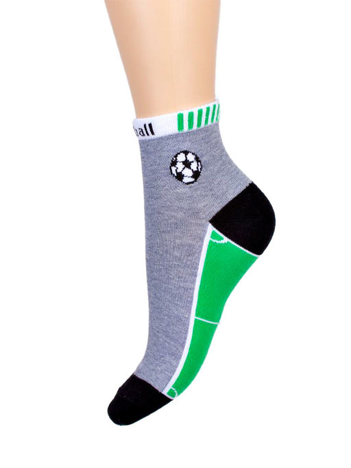 Детские демисезонные носочки в спортивном стиле. Стилизация следа под футбольное поле, "летящий" мяч на щиколотке, яркие цвета - всё это привлекает внимание не только любителей футбола, но и просто активных жизнерадостных мальчишек. У носочков натуральная хлопковая основа, благодаря которой ножки ребёнка дышат на протяжении всего дня. Упругая и эластичная резинка борта надёжно фиксирует носки на ногах.