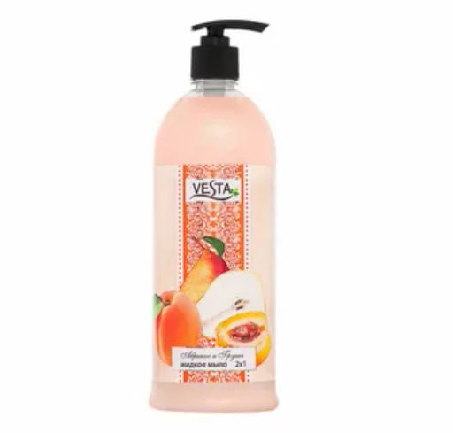 VESTA жидк.мыло 1л с дозатором "2х1 Очищение и Уход" Абрикос и Груша