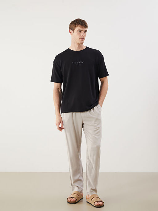 • Standart Kal?p Keten Kar???ml? Erkek Pantolon