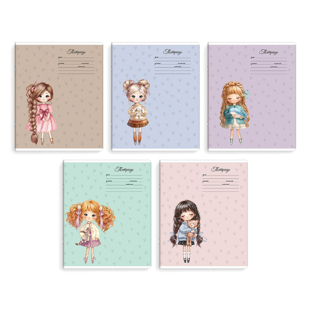 Тетрадь школьная ученическая, 18 л, клетка, арт. 70906/ 10 МАЛЕНЬКИЕ МОДНИЦЫ /А5+, мягкий переплёт (2 скобы), обложка - выборочный УФ-лак, мелованный картон 190 г/м?, упаковка ассорти/