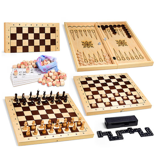• Набор из 5 игр (Русское лото, шахматы, шашки, нарды. домино) доска для шашек/шахмат/нард