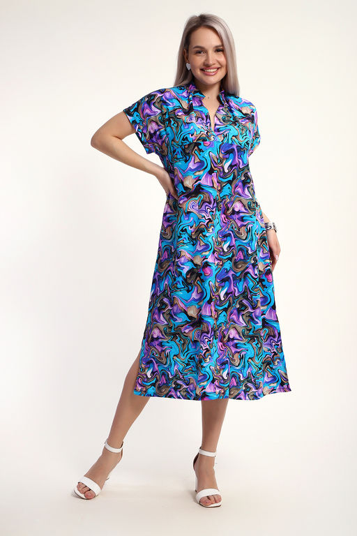 Легкое невесомое женственное платье из штапеля подойдет для дам, предпочитающих одежду из натуральных тканей. Стопроцентная вискоза в составе штапеля обеспечивает комфорт и удобство при носке, дышащая ткань отлично выручает в летнюю жару. Свободное длинное платье прямого кроя, расклешенное к низу - это находка для жещнин с любой фигурой и любого возраста. Воротник-стойка и V-образный вырез горловины придает изделию шарма и изысканности. Спущенный рукав оканчивается небольшим манжетом, по подолу в боковых швах обработаны разрезы. Это платье подойдет для любого случая- на пляж, на прогулку, а также для офиса.