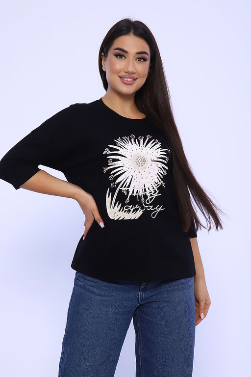 Женский лонгслив - футболка с рукавом 3/4, изготовлена из гладкого трикотажного полотна с оригинальным принтом, разнообразит ваш ежедневный образ. Футболка будет хорошим дополнением к джинсам, брюкам. Рукав 3/4 очень актуален в любую погоду!