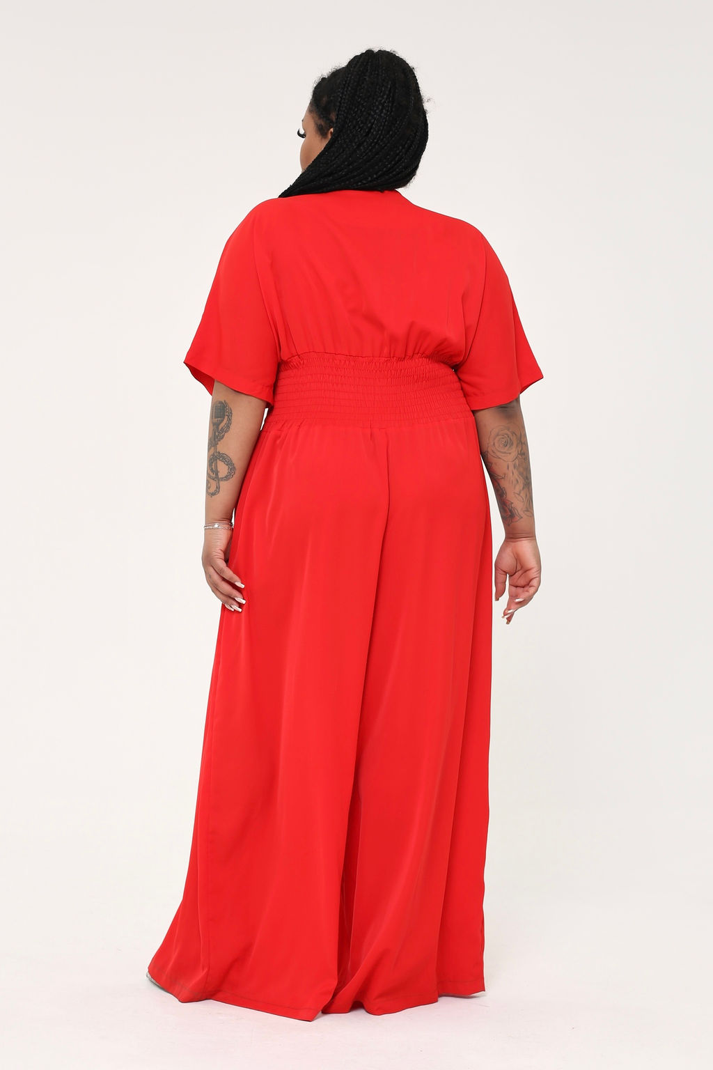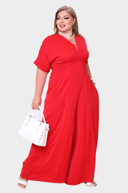 Комбинезон с молнией спереди высокий рост однотонный красный