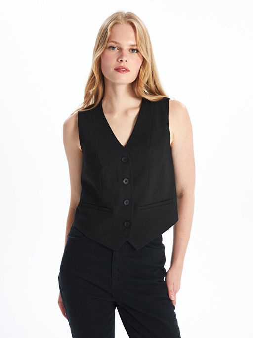 Kad?n V Yaka D?z Klasik Yelek