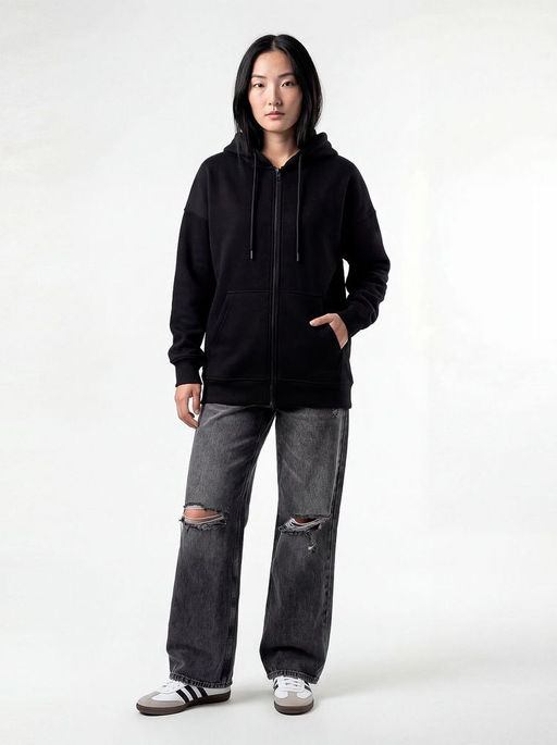 Женская базовая толстовка на молнии, с капюшоном и карманом кенгуру.
