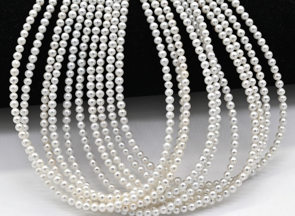• Бусины жемчуг шарик 3мм белый, 40см, 134 бусины Радуга камня