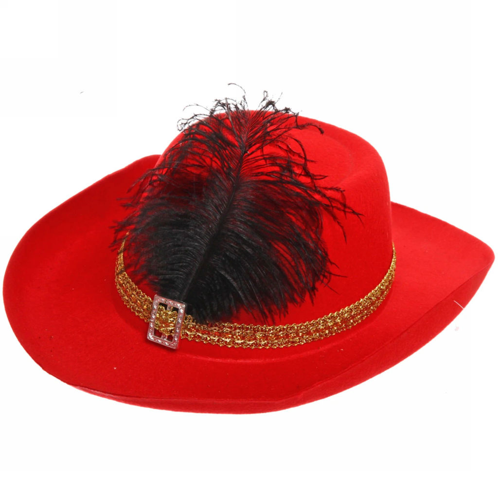 • Цена за 2 шт. Шляпа карнавальная "Мушкетёр" красный с пером