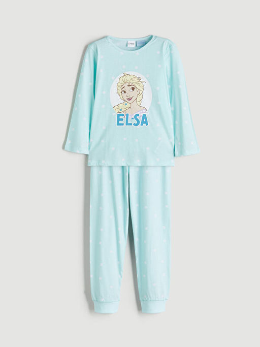 Bisiklet Yaka Elsa Bask?l? K?z ?ocuk Pijama Tak?m?