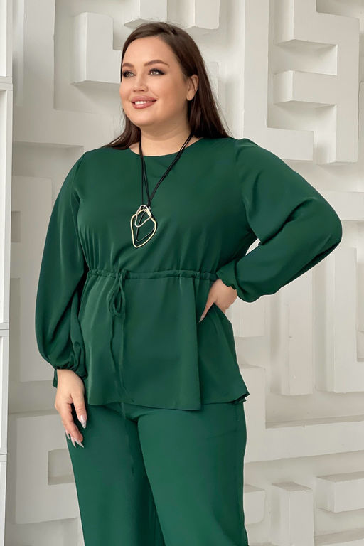 Блузка с поясом рукава фонарик изумруд