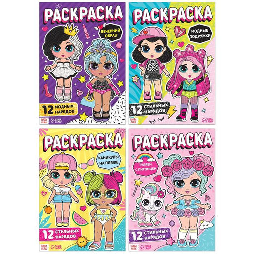 • Раскраски для девочек набор Стильные девчонки, 4 шт. по 16 стр., А4