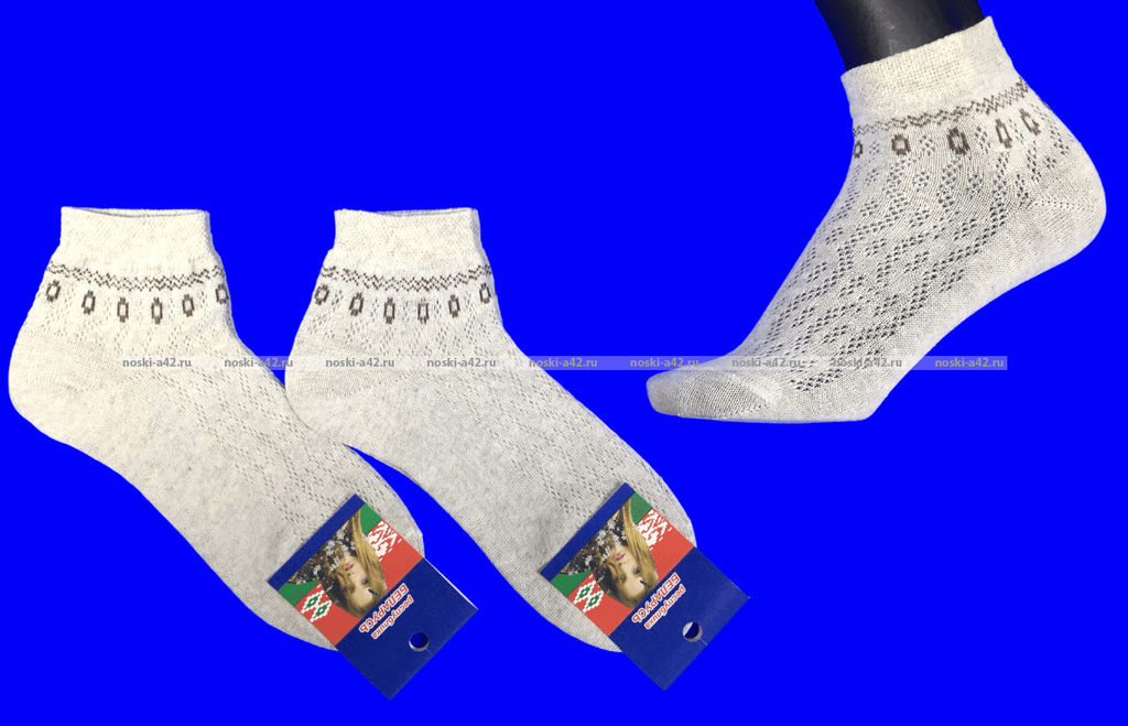 Цена за 10 пар. Беларусь носки женские лен ажурные с орнаментом