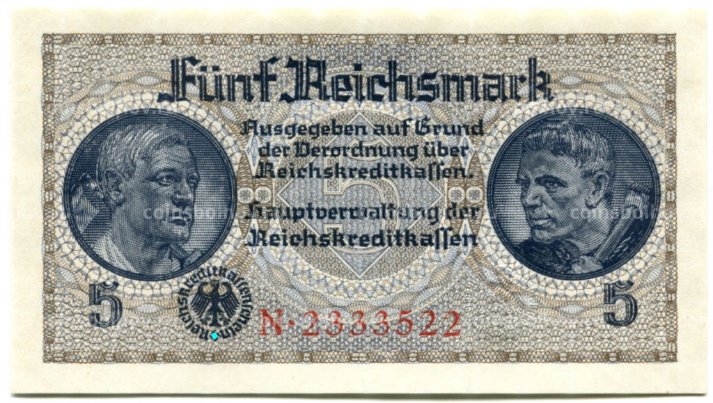 • Банкнота 5 рейхсмарок 1940 года Германия (Для оккупированных территорий)