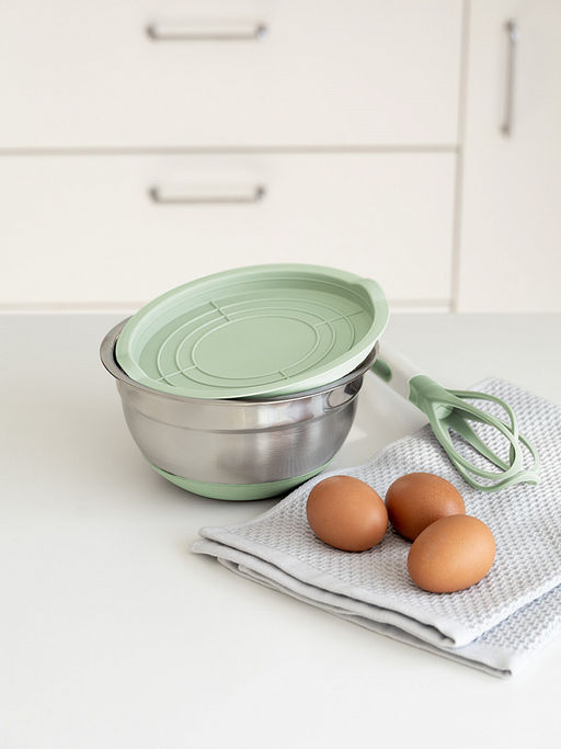 Миска для смешивания продуктов с крышкой 1,4л мятный нержавеющая сталь, силикон, ПП